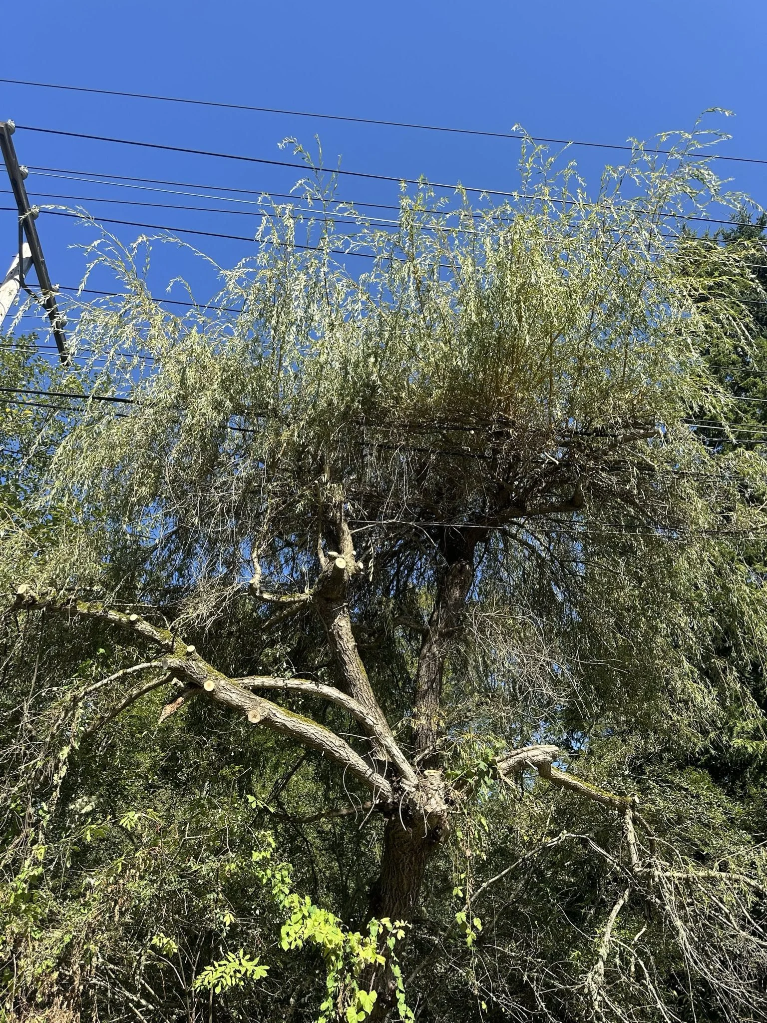 Tree trimmer gone wild. Really looks like they nailed the fiber and then said “oops” and gave up and moved to the next section.